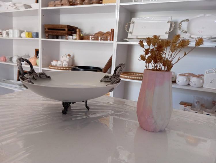 جنس چینی نفیس(تقدیس) و قطرش بدون احتساب دسته ها۲۱سانتی متر است